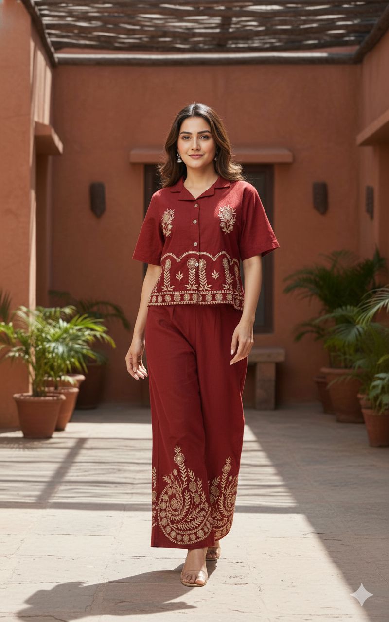 I wore this Kurti set for a Diwali get-together and got so many compliments. The embroidery is neat and looks rich without being too loud. It fits really well and flatters the figure. The color combination is eye-catching and the fabric feels premium. Would buy again for festive occasions!